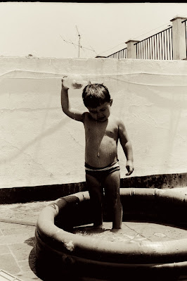 Cuando los "áticos" ni estaban ni se les esperaba, las azoteas en Sevilla se utilizaban en verano, bien para hacer fiestas de jóvenes, bien para refrescarse cuando "la caló" apretaba. Aún no había en la ciudad suficientes piscinas públicas que facilitaran el acceso de los vecinos que residían en los barrios populares del centro. Así que una manguera y una pequeña piscinita de plástico podían remediar su ausencia y hacer que los pequeños tuvieran una tarde pasada por agua.